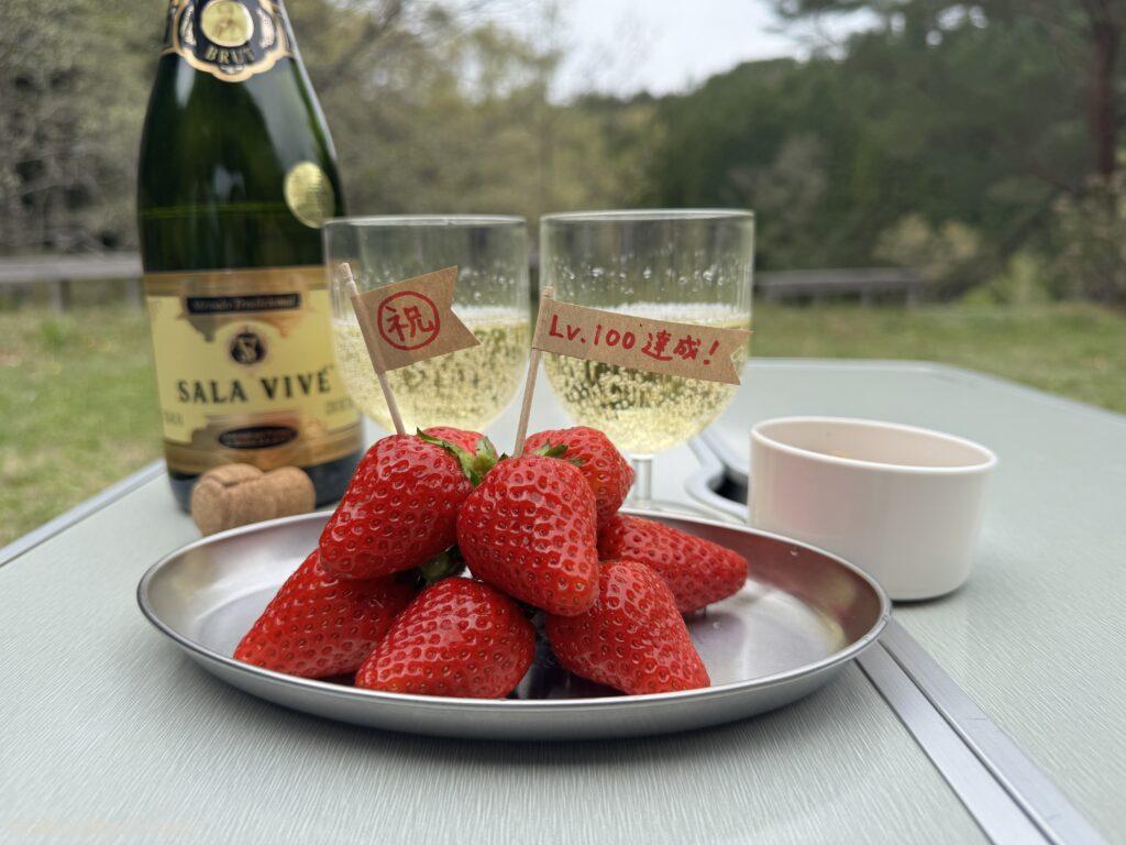 イチゴとシャンパンで100回記念お祝い♪