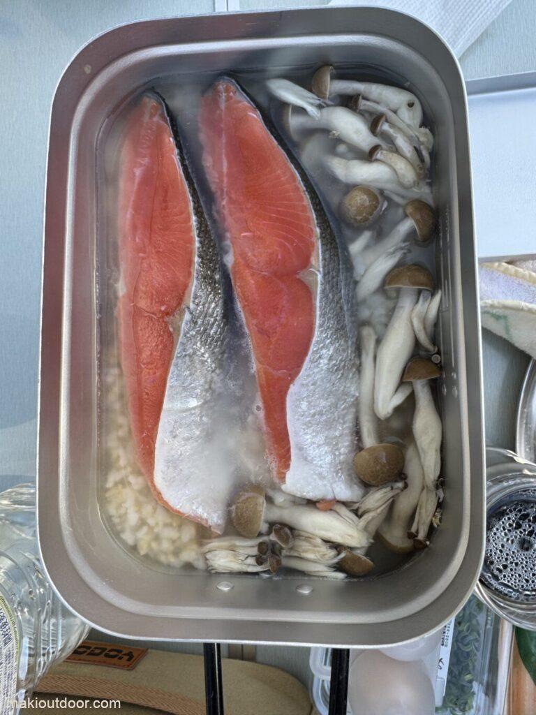 今回は鮭バージョン♪。鮭を豪勢に入れて具たっぷり雑炊に(●´ڡ`●)