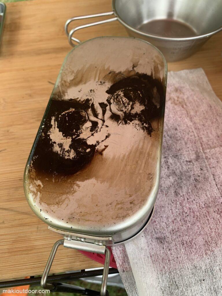 メスティンの底に台所洗剤塗っとくの忘れた〜(><)ススがすごい。