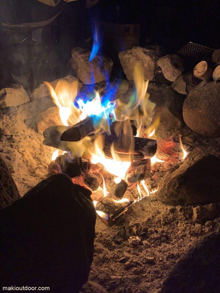 直火が出来るので、焚き火も豪快に!(ちびちび燃やしてたら、オーナーさんがのせてくれた。笑)