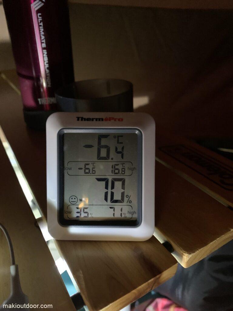テント内でこの温度だと外はどこまで下がったのかな〜