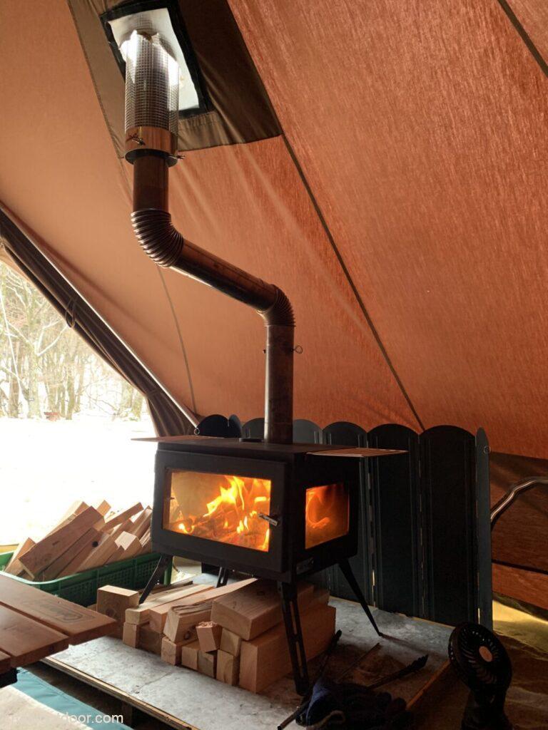 冬になると、周りのテントからニョキニョキと煙突が生えていて羨ましかったんだよね〜。