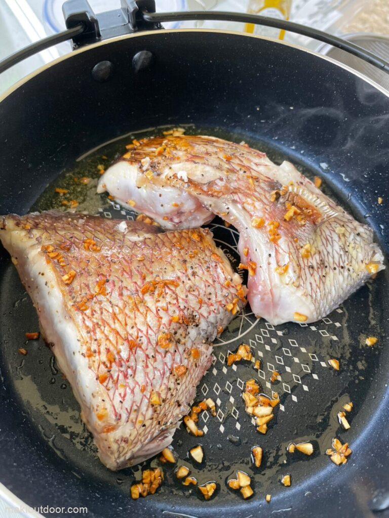 魚介リクエストを受けてメインは鯛・牡蠣・アサリのアクアパッツァに挑戦!大成功〜(●´ڡ`●)