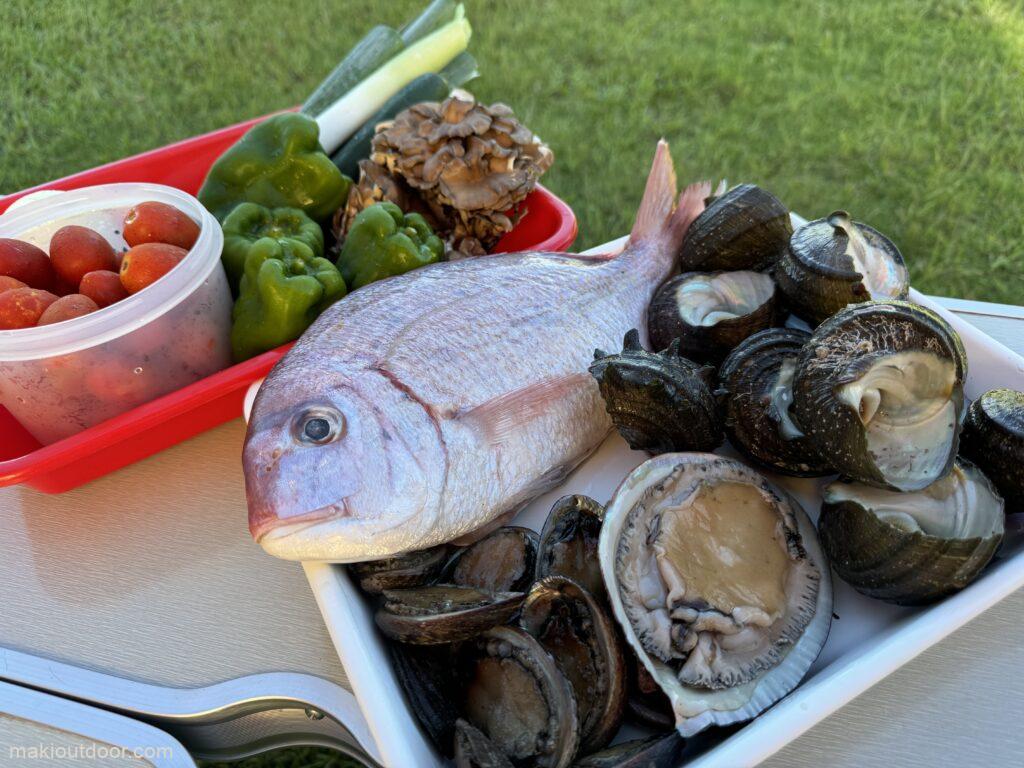 ファイアーディスクでまとめて焼くと写真映えするけど、食べる時に冷めるし微妙なので今回は七輪で順々に焼いて食べるスタイルにしてみた。