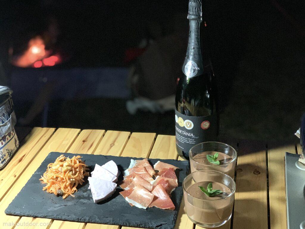 お祝いに、シャンパンとおつまみプレート、手作りチョコムースを用意してくれてた!
